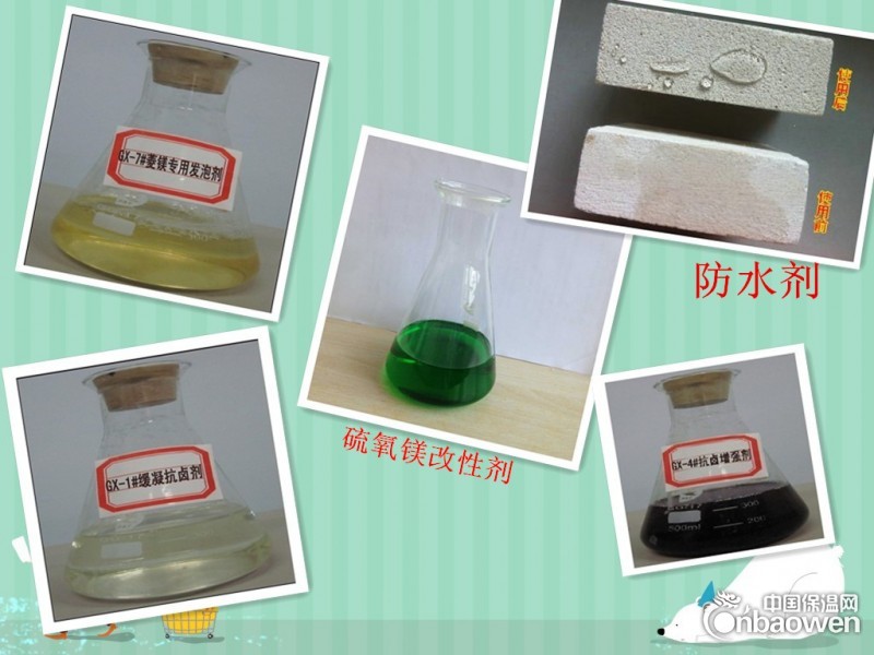 GX-8#促凝抗卤剂GX-8#促凝抗卤剂是我公司最具性价比优势的产品之一。GX-8#促凝抗卤剂不仅能加速晶种形成,提高镁水泥固化速度,还能在菱镁固化体的内表面和毛细孔道内壁形成一层憎水薄膜,显著提高制品的抗卤性能。特别适合于日均气温10℃左右菱镁制品的生产。