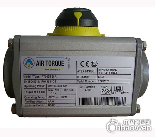 AIR TORQUE是欧洲最大的专业气动阀门执行器生产厂,也是目前全球专业生产气动阀门执行器最大的厂家,年产量高达30万台。AIRTORQUE广泛应用在石油、化工、天然气、电厂、冶金、水处理工程等领域。