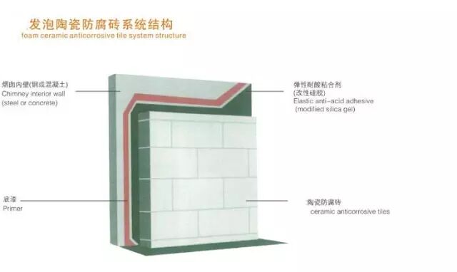 发泡陶瓷防腐砖,是针对湿法脱硫后烟囱防腐存在的诸多问题,研发出的具有长效保护体系的陶瓷防腐砖。是一种低膨胀高强度和抗折强度非金属的无机材料,具有极高的材料稳定性及物理强度,其抗压强度和抗折强度要远剩余同类型防腐材料,能安全、稳定、有效防止因烟气冲刷导致材料表面气流风蚀以及碎屑的产生和沉淀,甚至于材料的脱落,保证了整个烟囱的防腐体系的长久稳固。