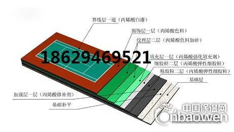 丙烯酸球场包括硬地丙烯酸和弹性丙烯酸两个系统:硬地丙烯酸厚度1.5-2mm左右,可适用于水泥地面(混凝土地面)和沥青地面;弹性丙烯酸厚度3-5mm左右,可适用于水泥地面(混凝土地面)和沥青地面。丙烯酸运动场地面广泛应用于网球场、篮球场、羽毛球场、排球场、手球场、轮滑场、乒乓球场、室内外足球场、跑道、看台、操场等运动场所。