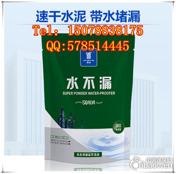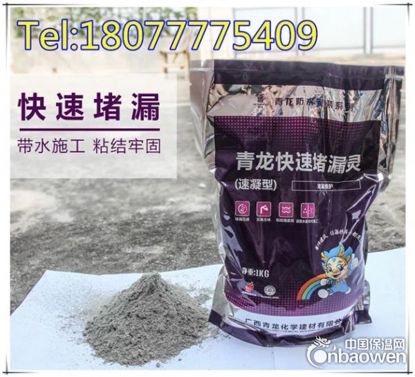 主要特点:1.本品具有带水快速堵漏功能,初凝时间仅三分钟,终凝十五分钟。2、本品迎、背水面均可施工,与基层结合成不老化的整体,有极强的耐水性。3、本品凝固时间可根据用户需求任意调节。防水、粘结一次完成,粘结力强。4、本品对钢筋无腐蚀。5、本品无毒、无味、环保、不燃,可用于饮用水工程。