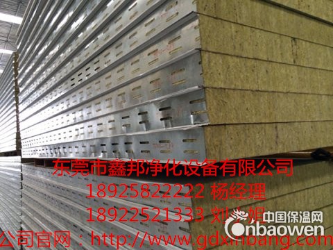 东莞市鑫邦净化设备有限公司主要生产及安装各种玻镁夹芯板、岩棉夹芯板、铝蜂窝夹芯板、纸蜂窝夹芯板、泡沫夹芯板、聚胺酯夹芯板、彩钢瓦楞板等各种金属面(不锈钢、镀锌板及彩涂板等)型材夹板;彩钢夹芯板是一种新颖的建筑材料,具有外形美观,色泽艳丽、重最轻、强度高、耐腐蚀、保温、隔热、容易施工、使用寿命长等特点,它集承重、保温、防火、防水于一体,无需二次装修,安装快捷方便,施工周期短,综合效益好广泛应用于钢结构厂房墙面、屋面、天花、净化改造工程、仓库、组合房屋、楼顶加层、围墙面板、冷库、烤漆房、办公室分隔、室内吸音等各行各业。欢迎随时来电咨询!