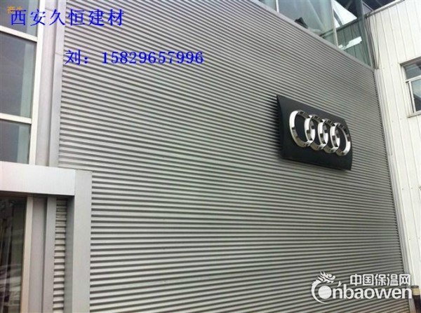 铝合金板墙面系统 1,底板加强支撑 2,附属支撑 3,底板 4,波纹板附属支撑 5,隔离片(Decoupling) 6,吸音棉 7,保温棉 8,波浪板(18/76) 9,紧固件 材料选择:材料采用防腐蚀性能强,使用寿命长的铝镁锰合金,系统使用寿命可达50年以上.