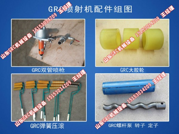 新型GRC喷枪:砂浆喷头配件精心设计精工制造,可扇形喷涂或者定向喷涂;普通的切割器工作时,切割辊和支承辊将玻璃纤维无捻粗纱喂入切割辊和支承辊之间,并由切割辊上的切割刀切断,缺点是切割刀刀刃磨损很快,易断丝,严重降低了生产效率,我公司产品经过多次改进,采用三轴联动支承切割,切割稳定不断丝,易损将大大降低,极大的提高了生产效率,而且喷枪质量较轻,操作灵活方便,降低操作人员疲劳程度,确保整个班次部件质量稳定。