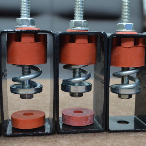减振吊钩是利用橡胶、钢弹簧的反压原理,采用优质钢弹簧和丁腈合成橡胶阻尼村料组成的隔振降噪元件,设计成悬挂式缓冲减振吊架。它具有钢弹簧的高弹性、固有频率低和丁腈合成橡胶的阻尼比大的双重特点,能消除钢弹簧所特有的共振时振幅激增的现象,在较宽的干扰频率范围内有相当明显的隔振效果,特别适合悬挂隔离因设备振动造成的低频固体传声,更利于房中房结构的隔音降噪,切断与外墙的钢性连接。