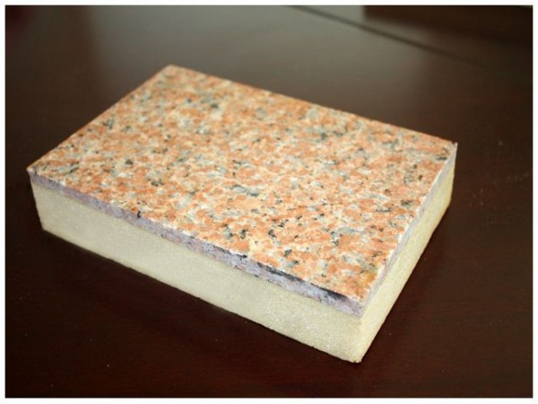 聚氨酯发泡组合原液计量预混合后,浇注机计量泵以一定配比输送于高压浇注混合头混合直接浇注于上下面层材料之间,经加热履带后定型,经在线同步裁断机切割成一定制品。
