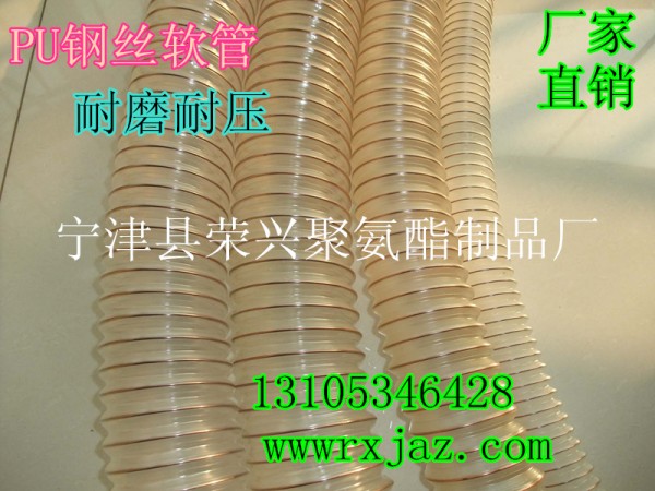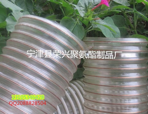 宁津县荣兴聚氨酯制品厂发布的德州木器厂专用耐磨吸尘钢丝伸缩pu软管价格低,免费拿样品图集库