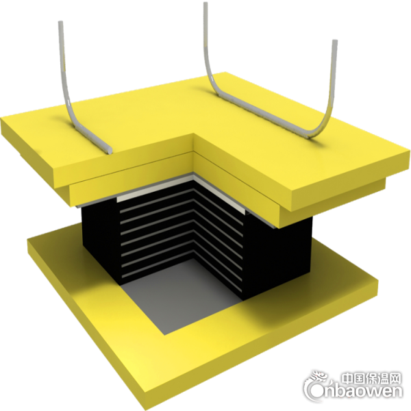我公司生产的幕墙隔震橡胶支座按不同的叠层结构制造工艺和配方设计,其中上连结盖板连接隔震装置与建筑物上部结构;下连结盖板连接隔震装置与建筑物基础,以传递水平剪力。夹层钢板与橡胶紧密结合,不仅提高了支座竖向承载力,又具有较大的水平变形能力和耐反复荷载疲劳的能力。