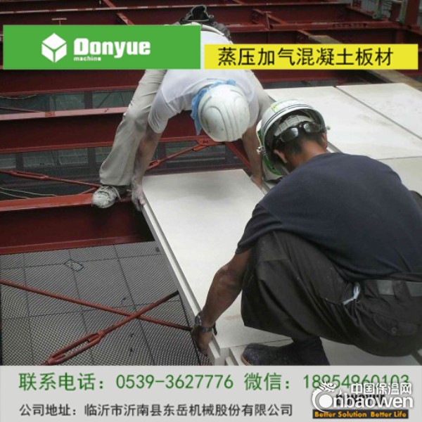 临沂东岳新型建材有限公司是一家新型建材厂家,主要生产蒸压轻质加气混凝土屋面板,或者叫ALC屋面板。是以水泥、石英砂、石灰为主要原料,铝粉为发泡剂,采用专利技术配方,经高压蒸汽养护制成的高性能均制多孔硅酸盐板材。板材内部设有经专利防锈防腐技术处理的钢筋网片,它具有轻质性、隔热保温性、耐火性、隔音性、承载性、抗震性、 抗渗性、环保性。按用途ALC板可分为屋面板、外墙板、隔墙板、楼板、特殊规格板等。