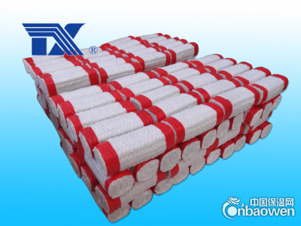 用陶瓷纤维纱线编的方形绳状耐高温产品。