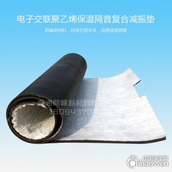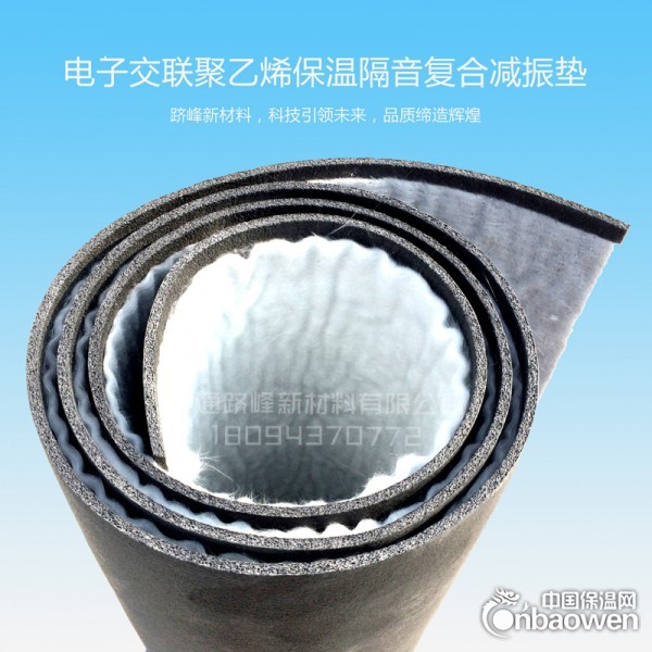 电子交联隔音减振垫,是以聚乙烯为主要原材料,配以其它几种不含任何有害物质的辅料先经混合挤塑成型,通过绿色健康辐照加工技术,利用电离子辐射作用于物质产生的交联改变基料原有的结构,形成网状独立闭孔泡孔结构,生产出的高科技高档闭孔泡沫材料。其泡孔细密均匀,强韧且有绕性,隔音隔热、保温效果优异,吸水性小,回弹性、耐候性、耐老化、防霉变和耐各种化学制剂腐蚀性强等符合国际环保标准的环保功能性材料。