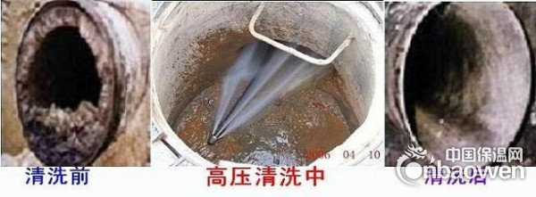7、本公司采用大型进口超高压水射流清洗设备及专用喷头,靠高速水流,切割击碎结垢物,并随高压水流排出管道,将管内彻底清洗干净,速度快。