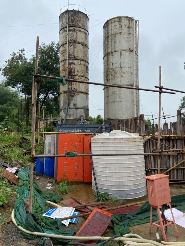 ⑷管线回填。地下废弃的油柜、管线(内装粗油、化学品)、 污水管及其他空穴容易导致火灾或塌方,采用泡沫混凝土回填可解决这些后患,费用也少。泡沫混凝土采用的密度取决于管子的直径及地下水位,一般为600-1100kg/m³;。
