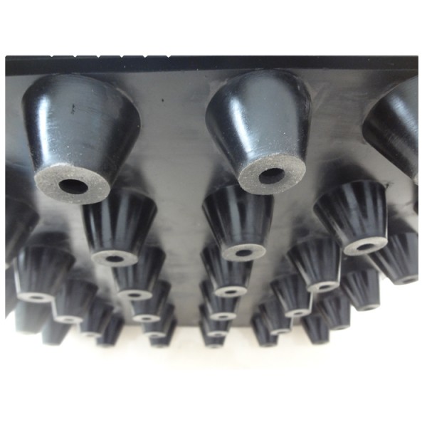 FZ型橡胶隔振隔声垫主要由合成橡胶,中间锦纶尼龙骨架加强层通过高温硫化模压而成,下部凸台设有孔,能起到一定的空气隔振和阻尼作用,固有频率低,隔振好。主要用于浮筑层和动力设备的隔振隔声,能改善隔离建筑物结构上的振动及噪声传递。 产品单块尺寸为500*500mm,可大面积组合铺设,也可根据工程需要任意切割大小,材料有耐油、防潮、防老化,耐温等特点。