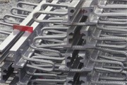 然后,检查Z-80型伸缩缝质量是否合格,若是合格再入槽设备。桥梁伸缩缝装置固定用14#槽钢,铅丝吊。严厉操控高程,符合要求后,再将伸缩缝设备与预埋筋焊接,选用对称焊接,留心钢筋的设备操作次序。焊接时严厉依照总监指挥来执行。禁止在“毛勒缝”的型钢上焊接。