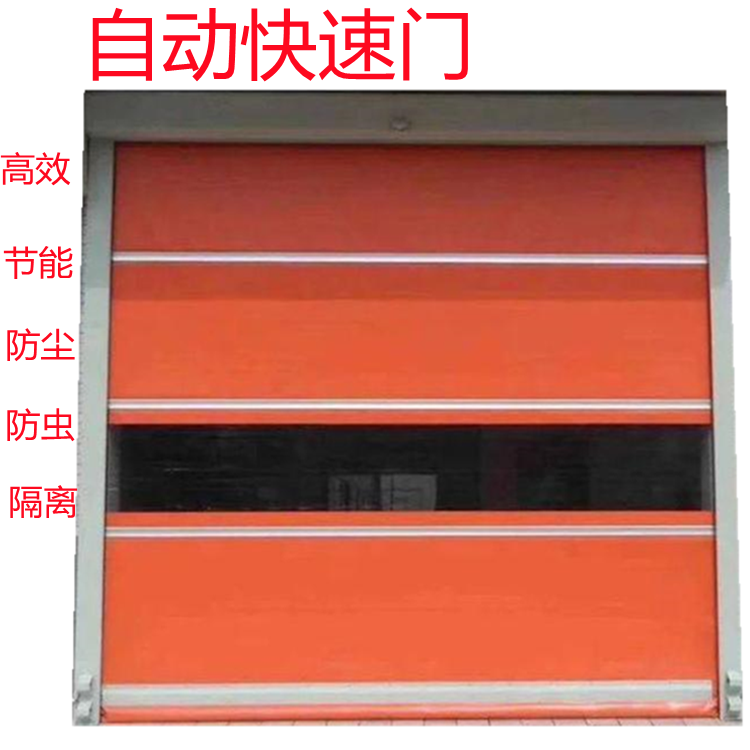 快速门又叫快速卷门和快速卷帘门,是一种通过PLC、变频器、编码器等控制门帘快速升降、准确定位(速度为0.8m/s-1.5m/s,从底到顶一般在2秒钟左右)的一种工业门。适用于轻工业、食品业、电子、医药、仓储、包装、印刷、化工业。