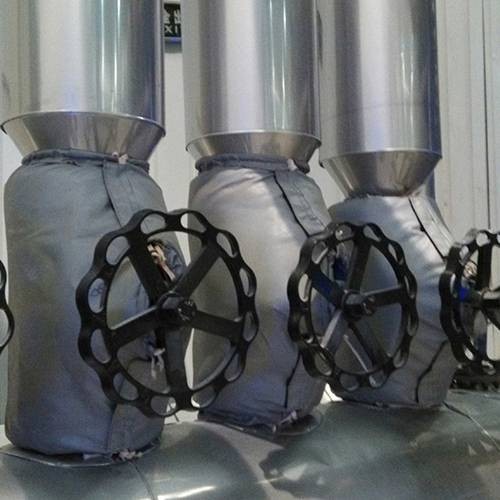 可拆卸柔性保温套采用耐高低温、防火保温材料;有内衬、中间保温层、外保护层等组成;根据管道或设备的形状及使用环境,经过测绘设计后,通过特殊工艺制作而成。是目前高档的阀门、法兰、管道、风机、设备绝热的一种方便快捷的保温材料。它可用在不同温度,不同形状的阀门、法兰、管道、风机、令热设备的绝热保温。对于要经常拆卸、维修保养、清洗的阀门、法兰、管道、风机、设备尤为实用。其综合经济效益好。是工业节能保温的理想选择