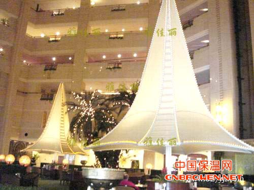 这就是软膜天花,也叫柔性天花、拉蓬天花或者拉展天花。软膜天花在十九世纪始创于瑞士,然后经法国Farmland SCHERRER (费兰德.斯科尔)先生1967年继续研究完善并成功推广到欧洲及美洲国家的天花市场。它由软膜、边扣条、特制龙骨组成。其中龙骨采用铝合金挤压成形,作用是扣住天花软膜;而边扣条和软膜是采用聚氯乙烯材料制成。它质地柔韧,色彩丰富,可随意张拉造型,彻底突破传统天花在造型、色彩、小块拼装等方面的局限性。同时,它又具有防火、防菌、防水、节能、环保、抗老化、安装方便等卓越特性,这一切都是传统天花所不能代替的。因为传统天花易变形,且不防水,一旦被水浸后就会有永久性的水渍,在色彩和造型上也很单一。软膜天花从各方面弥补了传统天花的不足,其优越性是无可挑剔的。