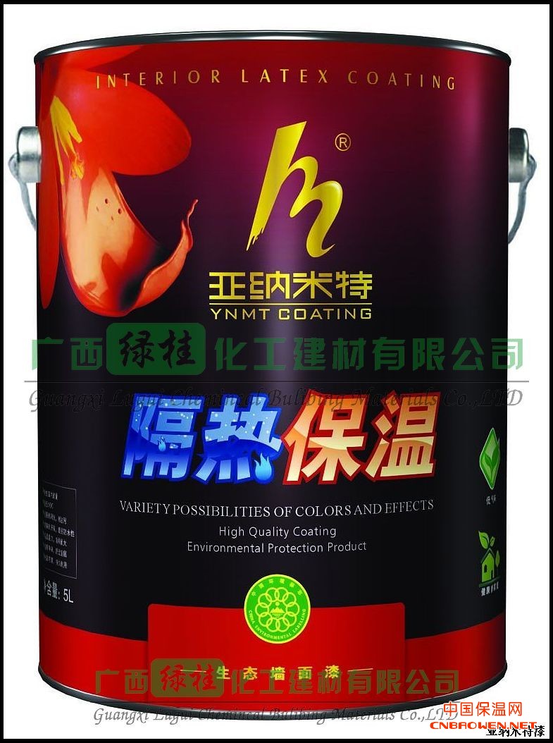 此外我公司还大量生产外墙太空隔热防晒涂料、油性太空隔热防晒漆、透明玻璃隔热防晒涂料、钢结构隔热防腐漆、胶粉聚苯颗粒保温系统、无机玻化微珠保温系统等产品,产品可用于节能建筑、节能家居、各种内外墙的隔热保温、钢结构的隔热保温等,具有优良的隔热保温效果,现我公司面向全国诚招代理经销商,有意者请电联系(李先生 13507717386)。公司已通过ISO9001国际质量体系认证、ISO14001国际环境国力体系认证、中国环境十环标志认证、荣获“全国涂料行业质量保障示范单位”、“全国涂料行业十佳名优环保建材”等各种国家、省部级的荣誉称号,产品畅销国内外市场,“亚纳米特”涂料品牌是新时期极具发展潜力的涂料品牌。前景无限,把握商机,引领节能建筑新潮流。