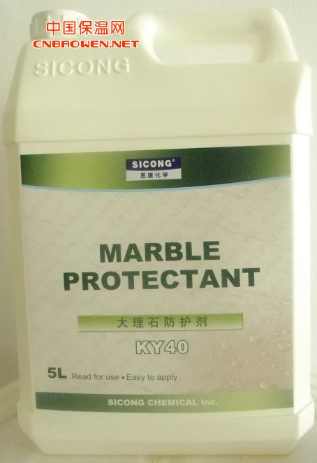 本防护剂为溶剂型产品,特别适用于大理石类中等吸水率石材,喷涂于石材表面后能迅速吸收并形成憎水防污性介面,保持其原有之透气性,同石材底面防护剂KY50或KY55配合使用能有效防止大理石湿贴时盐析泛碱,大大提高其抗污能力。并防止苔藓、地衣及霉菌的生长,冬天不会因吸水结冰而剥落。可用于大理石的六面处理。主体活体成份是美国FDA(美国食品医药局)认可物质,产品固化后在接触食物时,无任何毒性,不会对人体有伤害。