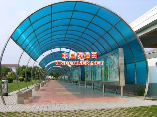 PC陽光板一種綜合性能極佳的工程塑料,具有傑出的物理,機械,電氣和熱性能,故有透明塑料之王的美稱,有良好的抗沖擊,隔熱,隔音,采光,防紫外線,阻燃等優點,廣泛應用於公用,民用建築的采光天棚,通道頂棚,高架路隔音墻,商場頂蓋,植物溫室等,是目前世界上最理想的一種陽光棚材料。