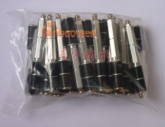 高压止水针头的简述: 高压灌注机的配件——高压止水针头:是利用环压紧固的原理。头部设有单向截止阀,可防止浆液在高压推挤下倒喷。环压膨胀部分用橡胶套管,直径为13MM,塞入孔径为14MM的注浆孔上,拧紧环压螺栓,压缩橡胶套管,使注浆嘴固定在注浆孔内。(注浆嘴的单向阀要在0。4KN以上压力才能打开,因此注浆压力必须高于这个数值。