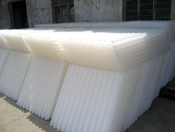 我公司生产的六角形蜂窝填料有斜管和直管两种形式。材质有聚丙稀,聚氯乙烯和玻璃钢三种。