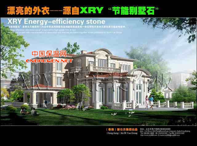 XRY节能别墅石是新日月集团专门为全世界高档别墅和高档建筑保温装饰一体化研究开发的天然石质节能装饰板材。在具有XRY节能装饰板全部优点的同时,更以其独特的石材处理手法取胜,为别墅等高当建筑高贵华丽的风格与气质量身打造。