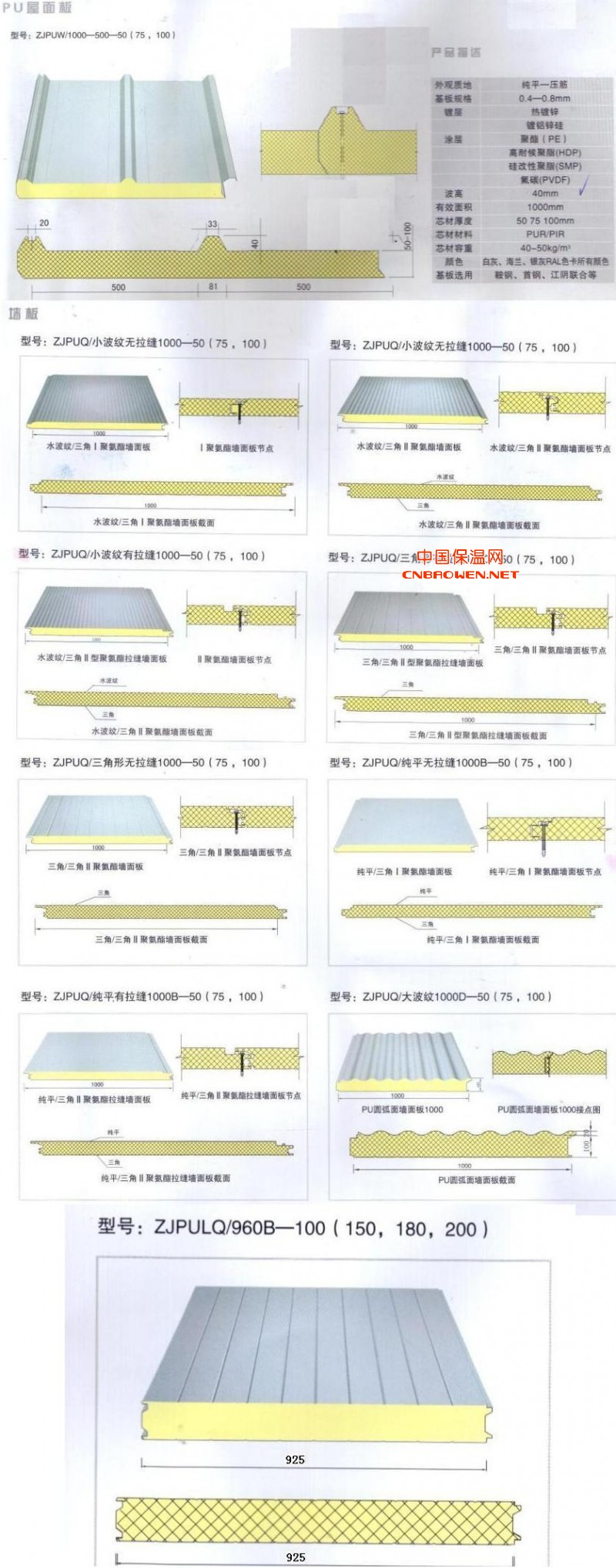 | 供应聚氨酯夹芯板墙板新双母口拉縫 | 聚氨酯墙板 | ZJPUQ/小波文有拉缝1000-50(75,100) | 彩涂热镀锌基板、芯材PUR/PIR |