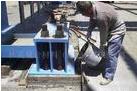 4. 将搅拌均匀的灌浆料从一个方向灌入灌浆部位。必要时可借助竹条或钢钎导流,可适当振捣或轻轻敲打模板。