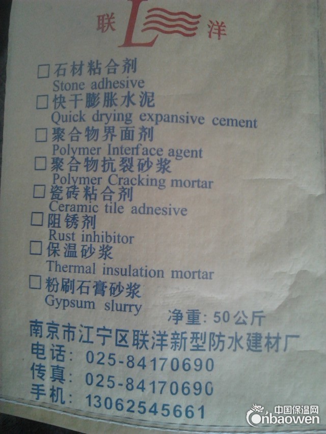 陶瓷墙地砖粘合剂为单包装粉粒状料。用编织(塑料薄膜衬内)包装,每袋50公斤或20公斤,本剂有效期一年。