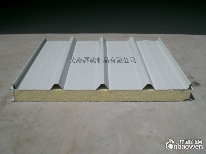 - 上海腾威彩钢制品有限公司专业生产聚氨酯夹芯板 聚氨酯夹芯板厂家 聚氨酯夹芯板报价 上海聚氨酯夹芯板,聚氨酯夹芯板 聚氨酯夹芯板厂家 聚氨酯夹芯板报价 上海聚氨酯夹芯板,聚氨酯夹芯板:‘有EPS的各种优点,并具有不易燃烧,在超低温下使用收缩小、不脆化,最为适合于冷库。【材料适用】1.钢板厚度:上/下0.25~0.8mm彩色钢板/电、热镀锌板/不锈钢板2.芯材:聚氨酯(PU)容量为30~80kg/m3【产品规格】1.企口式有效宽度:950mm、1150mm;厚度40mm~150mm;长度不限【产品特性】1.优点:具有轻便耐用、安装方便,适用范围广泛。2.缺点:价格昂贵’达不到防火等级。3.消防等级:B级【适用领域】广泛用于钢结构厂房、简易活动房的屋面、墙体、空气洁净室的吊顶与隔断。最为适合建造冷库