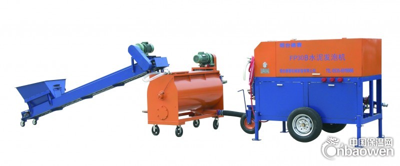 FP30A砂浆两用机把水泥和水在搅拌斗内按一定比例搅拌成水泥浆,通过液压输送缸压送到管道中;发泡剂按一定比例与水混合后通过高压泵再与压缩空气混合;在管道中形成高密度的细密泡沫,再与管道中的水泥浆混合形成发泡水泥。