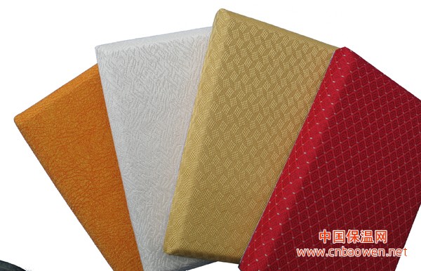 3.)面料为防火吸音布、皮、人造革等,有多种颜色及图案的饰面布可供选择,外观美观大方,又不乏温馨典雅之感。
