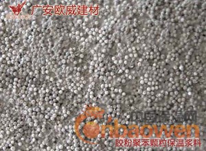聚苯颗粒保温砂浆采用无机材料与有机材料复合,根据科学配方配制而成,产品质量符合JG 158-2004标准要求。胶粉料用于施工现场与聚苯颗粒轻骨料搅拌成聚苯颗粒保温浆料,可用聚苯颗粒新料及再生料(旧料)以及按一定粒度级配的保温浆料的配制。