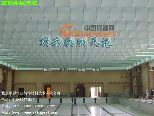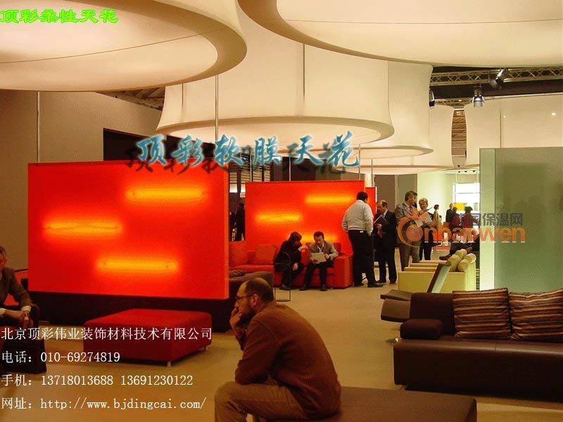 顶彩软膜天花其特点在于可完成任何多变的造型,直接打破了传统天花造型困难的劣势,色彩丰富并拥有可透光材质,更可把天花设计多元化。在酒店大堂、大型卖场、音乐厅、娱乐场所等场地,因空间大,以往都采用小块天花拼装而成。而采用顶彩软膜天花,柔性天花,拉膜天花,拉蓬天花,透光膜,pvc天花可以把大型场地的辉煌气派展现的淋漓尽致,更可把施工期缩减三分之二,正逐步成为室内装饰业首选的天花产品。