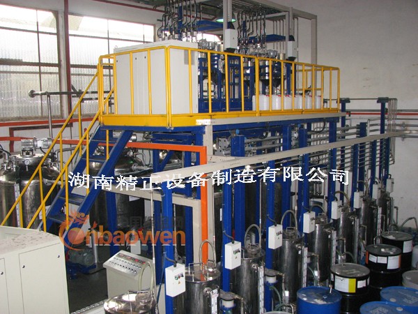 全自动预混系统在汽车座椅发泡行业应用广泛,该预混自动化程度很高,能适应多种原料多种配比预混,并且具有自动跟踪各组份原料的流量、比例、重量、自动存储混料数据报表,控制超差报警等功能。