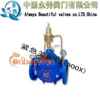 | 900X紧急关闭阀,是一种用于消防用水与生活用水并联的供水系统中,用来调配供水方向的阀门。当火灾发生时,消防急需大量用水,900X紧急关闭阀立即切断生活用水,确保足够的消防用水;当消防停止用水压力减小时,阀门自动打开,呈常开状态,恢复生活供水。该阀使系统无须另设专门的消防单独供水管网,大大地节约了建设成本和用水量。阀门控制灵敏度高,安全可靠,调试简便,使用寿命长。 | ||||||||||||||||||||||||||||||||||||||||||||||||||||||||||||