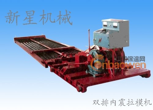 该机属我公司设计用齿轮传动最先进的内振拉模制板机,采用长线法生产120×500、120×600、180×600三种规格单联和双联机型,生产长度为4500mm和6000mm以内各种带副筋或不带副筋的预制楼板,并获两项专利。