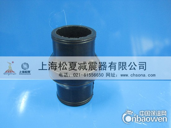 上海松夏工厂于2001年根据用户的需求研发了卡箍式橡胶软连接,采用不锈钢卡箍代替法兰盘和螺栓。同时采用天然橡胶含量极高的合成橡胶,硫化出高弹性和高耐压性能的优质卡箍式橡胶接头。在安装使用时,可方便地将卡箍式橡胶接头的两端分别套装在要连接的官道上,通过不锈钢卡箍将橡胶接头与管道固定连接;拆卸时松开卡箍即可。从而达到补偿管道因热胀冷缩,输水所产生的位移量之目的。