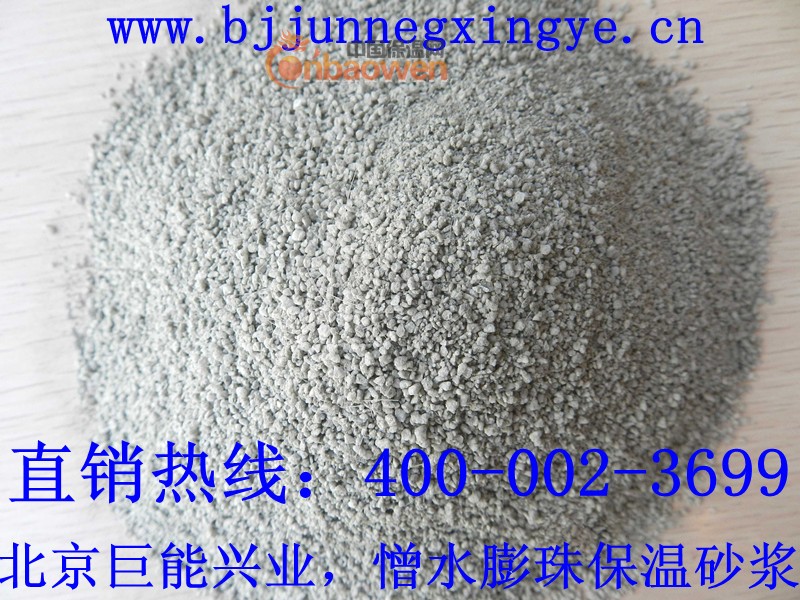 憎水膨珠保温砂浆是以玻化微珠轻骨料为主要原料,加入憎水剂、无机胶凝材料和多种外加剂后,通过预混合干拌制成的无机保温砂浆。