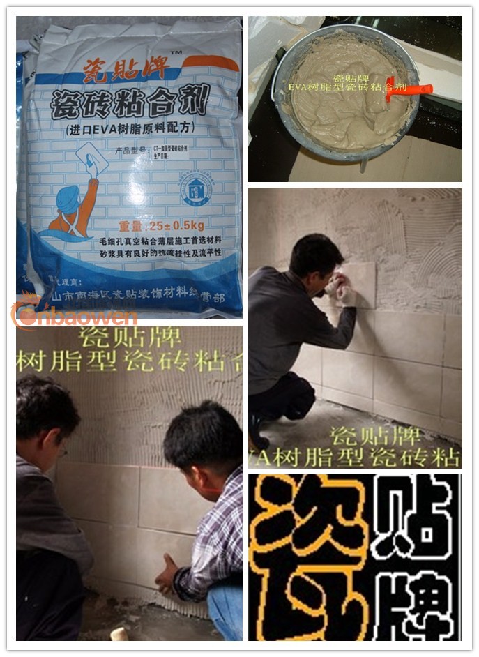EVA树脂型瓷砖粘合剂母料勾兑水泥沙后,施工适用于:抛光砖湿贴粘墙,仿古砖湿贴粘墙,马赛克填缝粘合粘墙,人造石湿贴粘墙,大理石湿贴粘墙,沙岩砖湿贴粘墙等等,更多材质石类未能逐一列举。