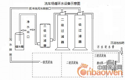 循环水设备:我公司推出新型的洗车场循环水处理装置属于水处理领域中一项新技术。主要是将洗车后的废水集水沉淀,在沉淀池当中絮凝净化加药除泡,再由潜水泵加压进入一号过滤器(主要去处水中的杂质及悬浮物);再串联进入二号过滤器(主要去除水中异味改善水的色度);同时串联进入三号高度精密过滤器(主要提高过滤精度,过滤前面两级过滤不到的悬浮物、杂质),最后链接管道到储水箱。