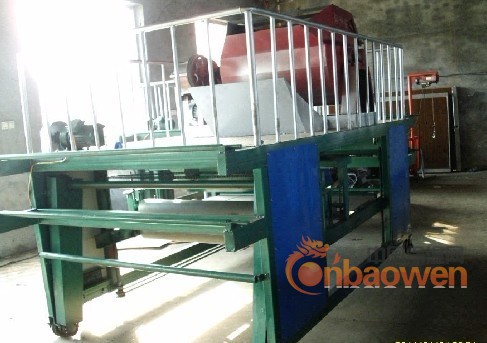 4、投料,拌浆,铺布,复合,压制一次成型,3—5人每天可生产700平方米,比传统的设备省人工40%。