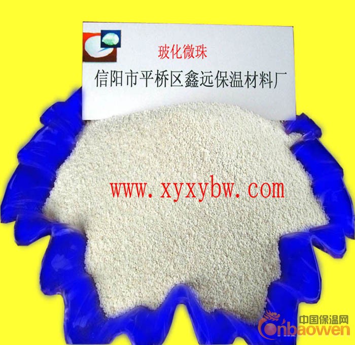玻化微珠是一种环保型高性能新型无机轻质绝热材料,与有机类保温材料相比,具有不燃烧、强度高和使用寿命长等优点。产品呈不规则球状颗粒,内部多孔空腔结构,表面玻化封闭,光泽平滑,理化性能十分稳定,具有质轻、绝热、防火、耐高温、耐老化、吸水率小等优异性能,可广泛用于工业、农业、建材、化工、冶炼、轻工等诸多领域.