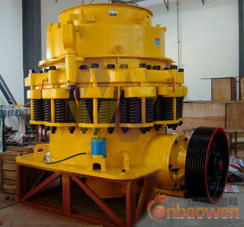 4)结构简介:圆锥破碎机其结构主要有机架、水平轴、动锥体、平衡轮、偏心套、上破碎壁(固定锥)、下破碎壁(动锥)、液力偶合器、润滑系统、液压系统、控制系统等几部分组成.