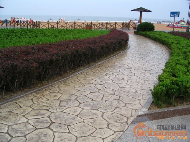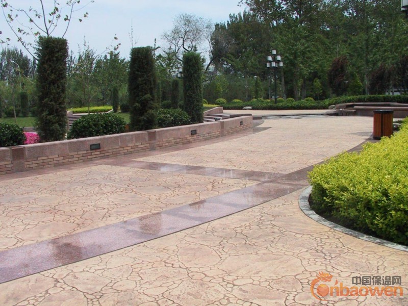 3、用此硬化剂材料制作的彩色压模地坪具有耐磨、防滑、抗冻、不易起尘、易清洁、高强度、耐冲击、且色彩和款式方面有广泛的选择性、成本低和绿色环保性等特点,是目前园林、市政、停车场、公园小道,商业和文化设施领域的理想选择。